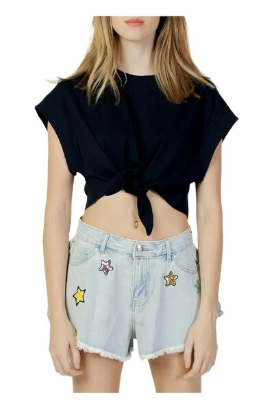 Nieuw π€© JACQUELINE De YONG π Shirts Short Top With Front Knot 15254 Blue π