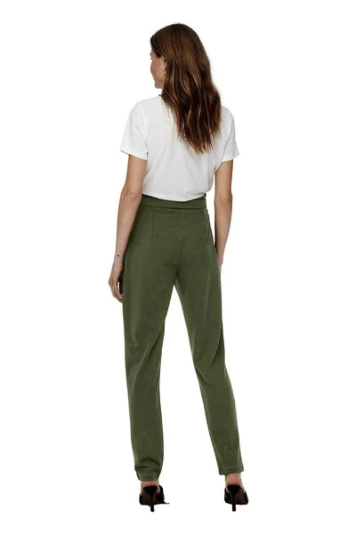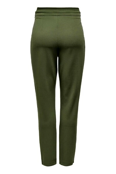 Recht model broek met hoge tailleband, ritssluiting en zakken aan de voorkant.
